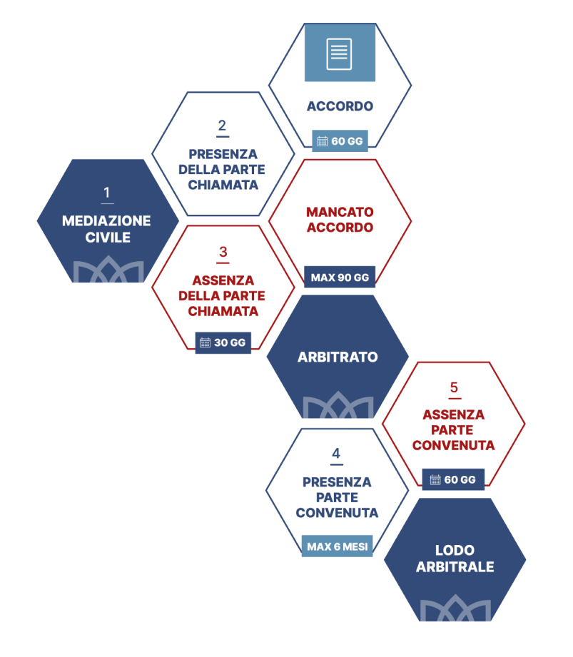 - Se la parte chiamata si presenta, si svolge la procedura di arbitrato (che è identico ad un giudizio in tribunale ma con un giudice privato, l’arbitro). La procedura arbitrale può durare al massimo 6 mesi;